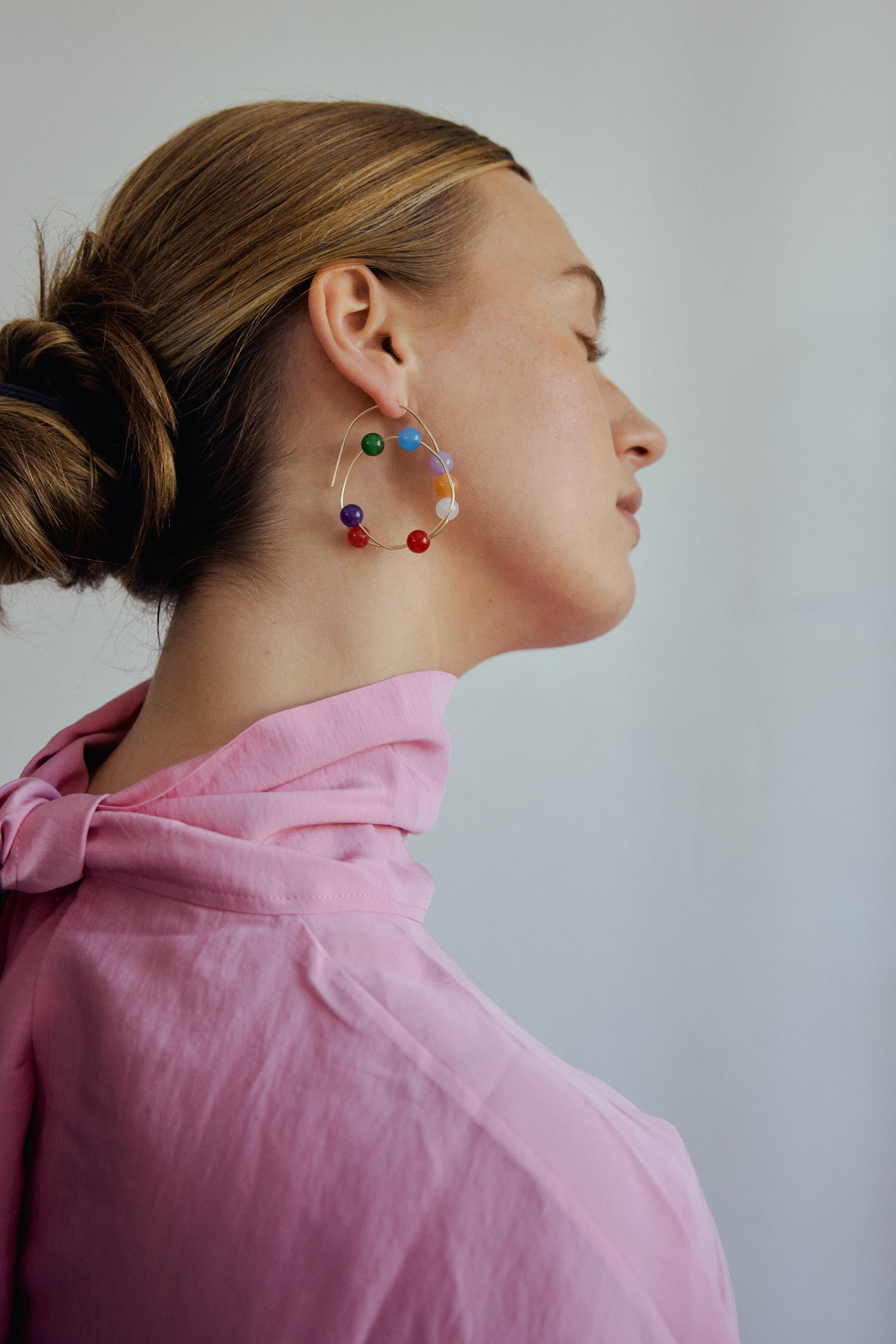 The Earrings are made by hand with a lot of love and high quality multicoloured jade stones and a gold filled wire.