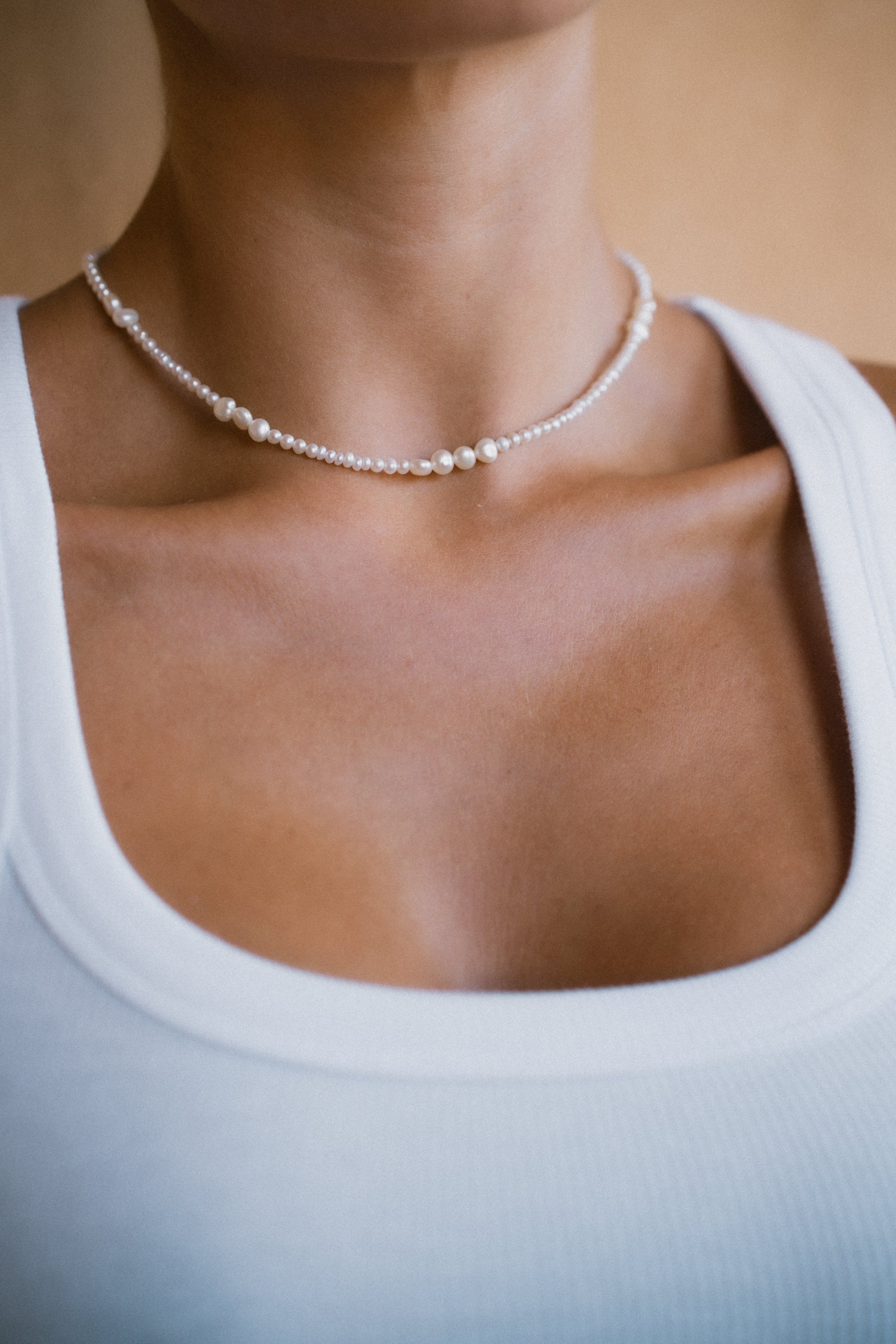 Handgefertigte Kette aus hochwertigen Süßwasserperlen.