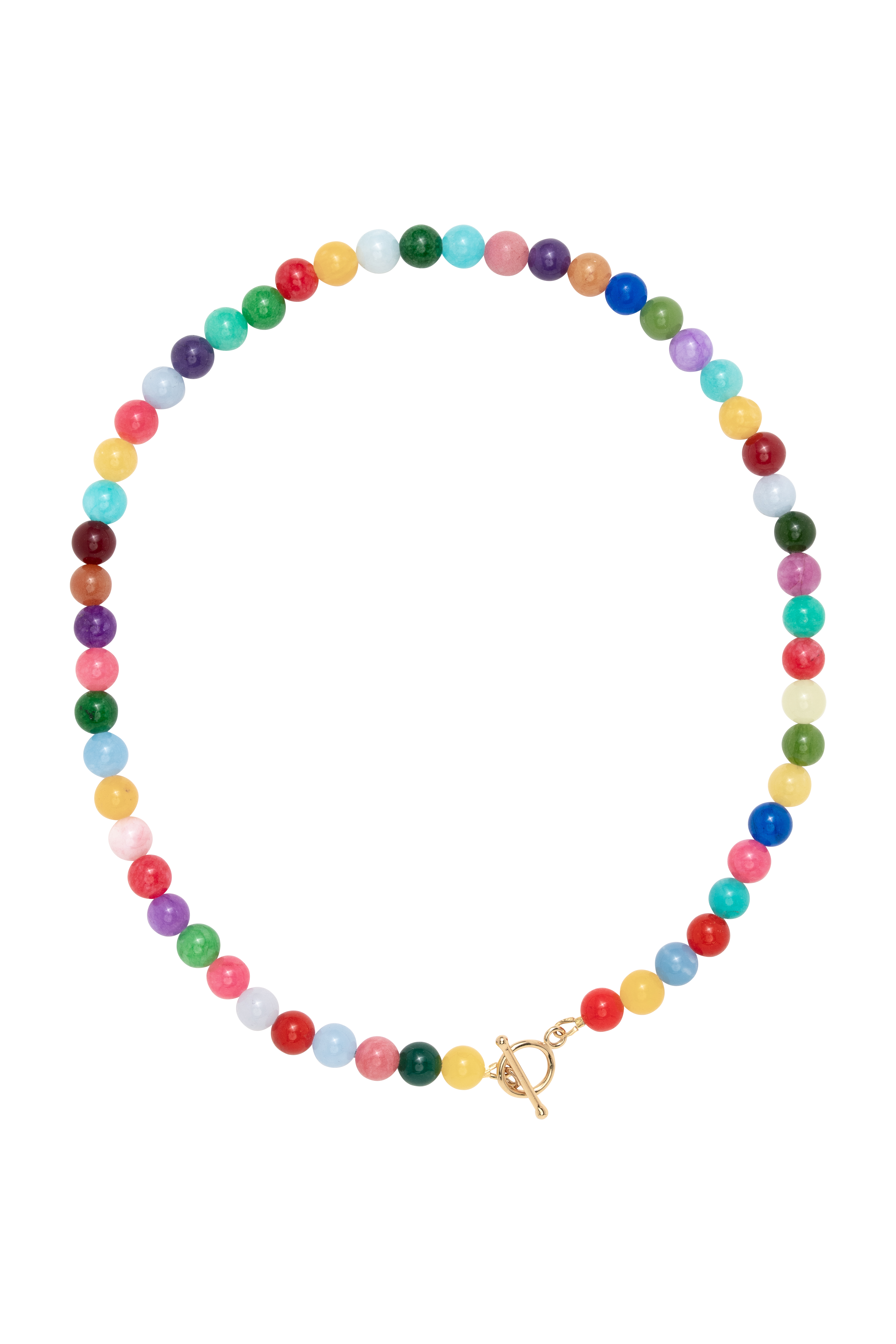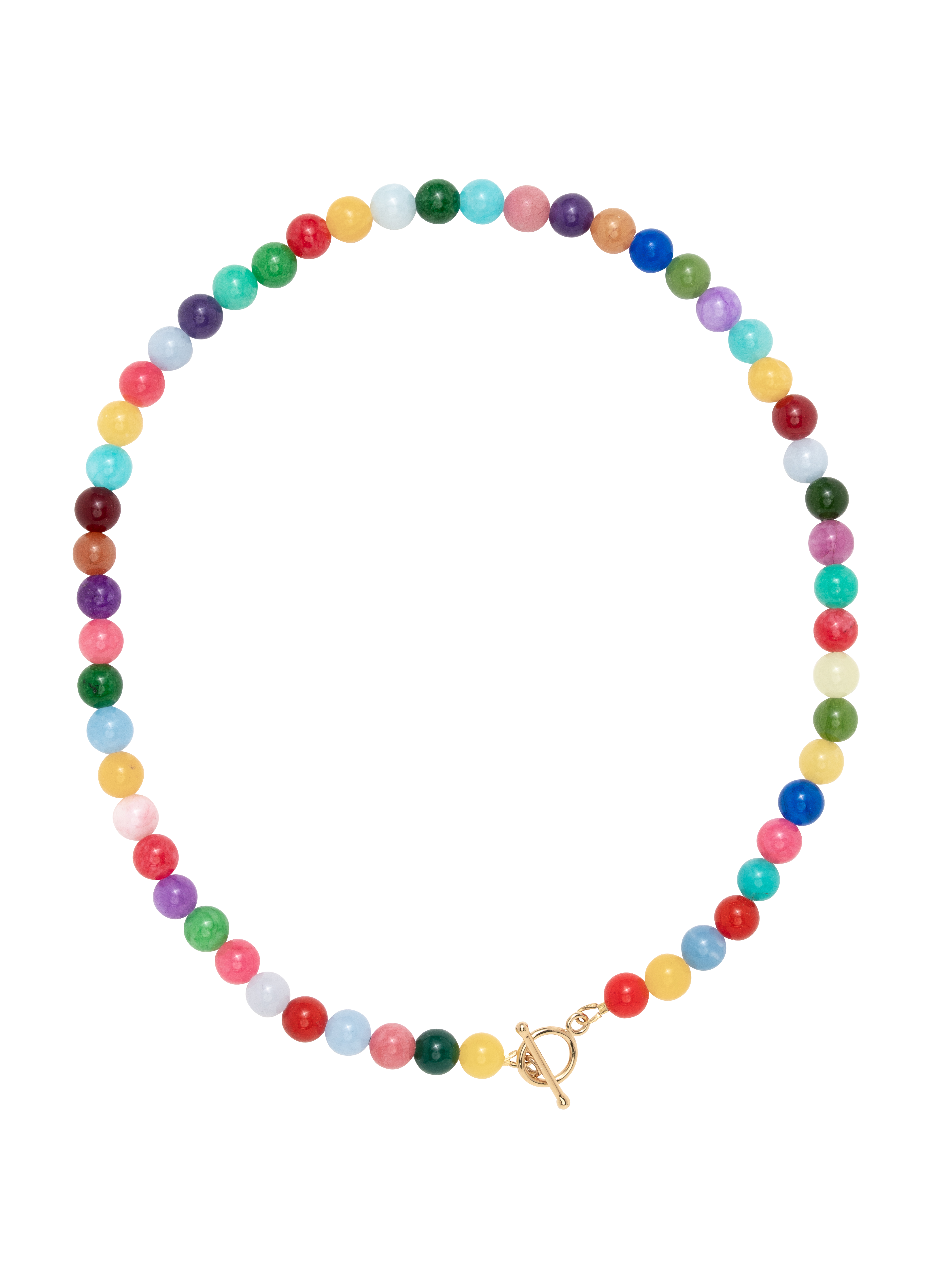 Rainbow - The Ena Necklace mit 42cm und T-Verschluss & Pearls 02 mit Gold Filled Draht und gefärbten Jadesteinen.