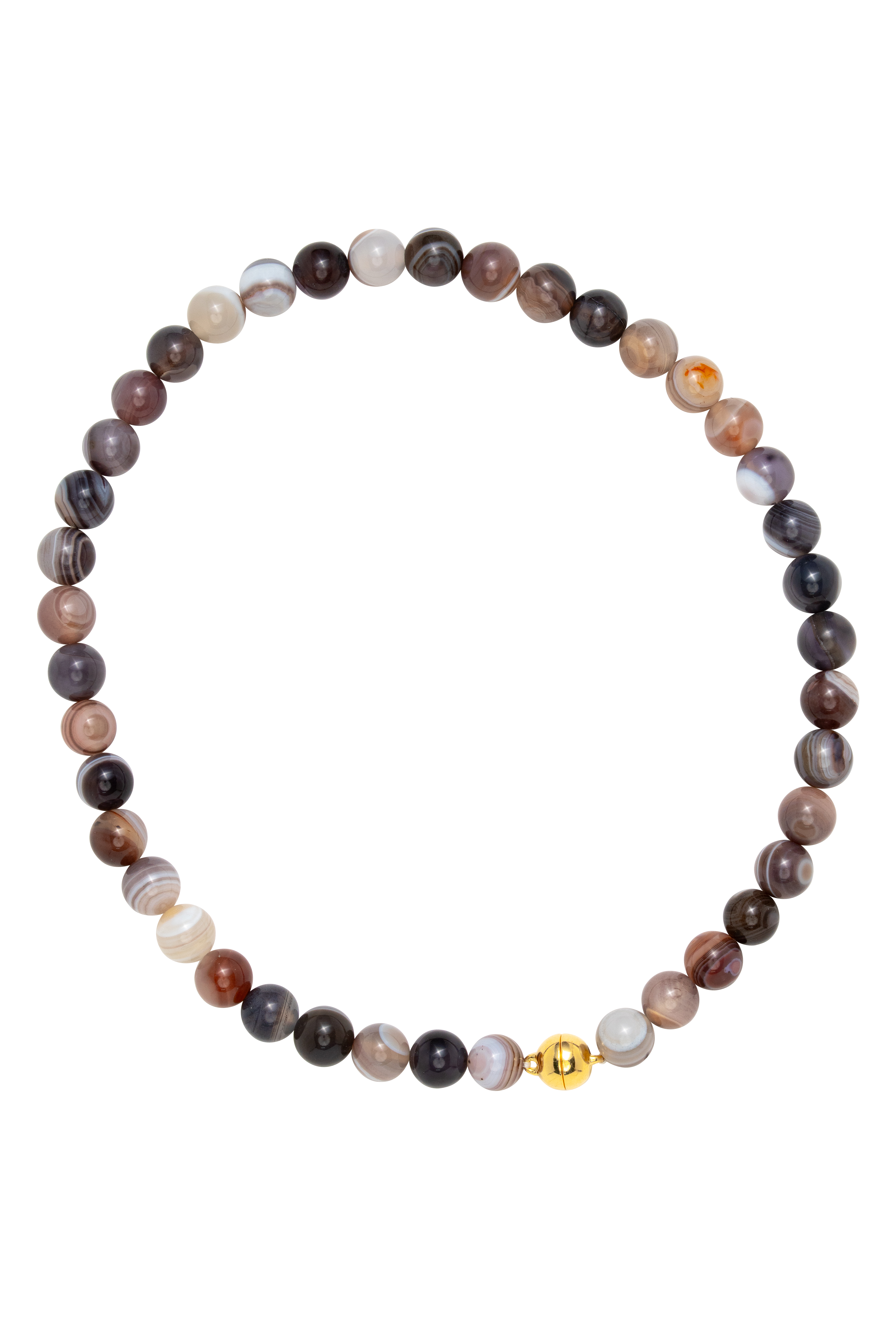 Handgefertigte Halskette (42cm) aus Botswana Achat Perlen (10mm).
